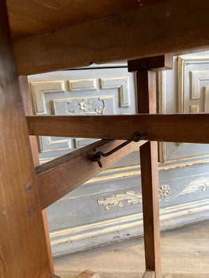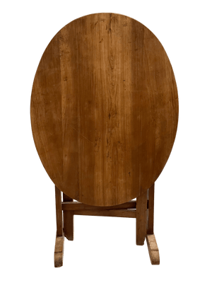 French Provincial Oval Tilt-Top Wine Tasting Table, fruitwood, 19th – early 20th Century. Also a good size for a side table. 44"H(folded), 29"h (table), 26"w. x 35" d.